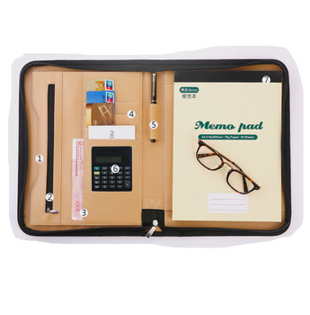 الجملة A4 محفظة جلدية سحاب منظم مجلد مقابلة استئناف الوثيقة Padfolio Binder بو الجلود محفظة بسحاب